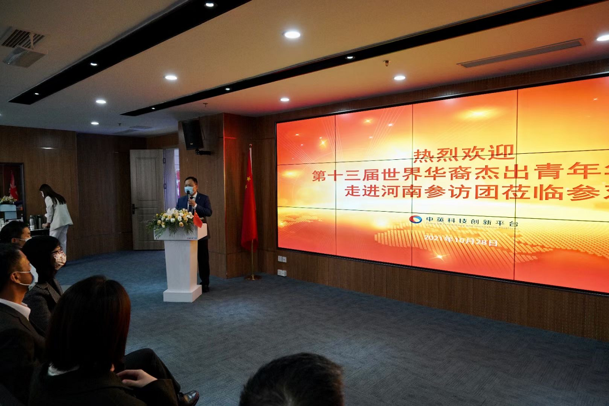 10月28日上午,由国务院侨务办公室组织的“第十三届世界华裔杰出青年华夏行走进河南参访团”一行30人莅临平台参观交流。郑州市市委常委、统战部部长黄卿,河南省委统战部侨务综合处处长霍鑫,郑州市委统战部副部长刘红梅,郑东新区党工委委员、郑州中原科技城常务副主任赵凯等领导陪同参观。平台主席任翔携相关部门负责人接访,并代表全体员工对参访团的到来表示热烈欢迎。
